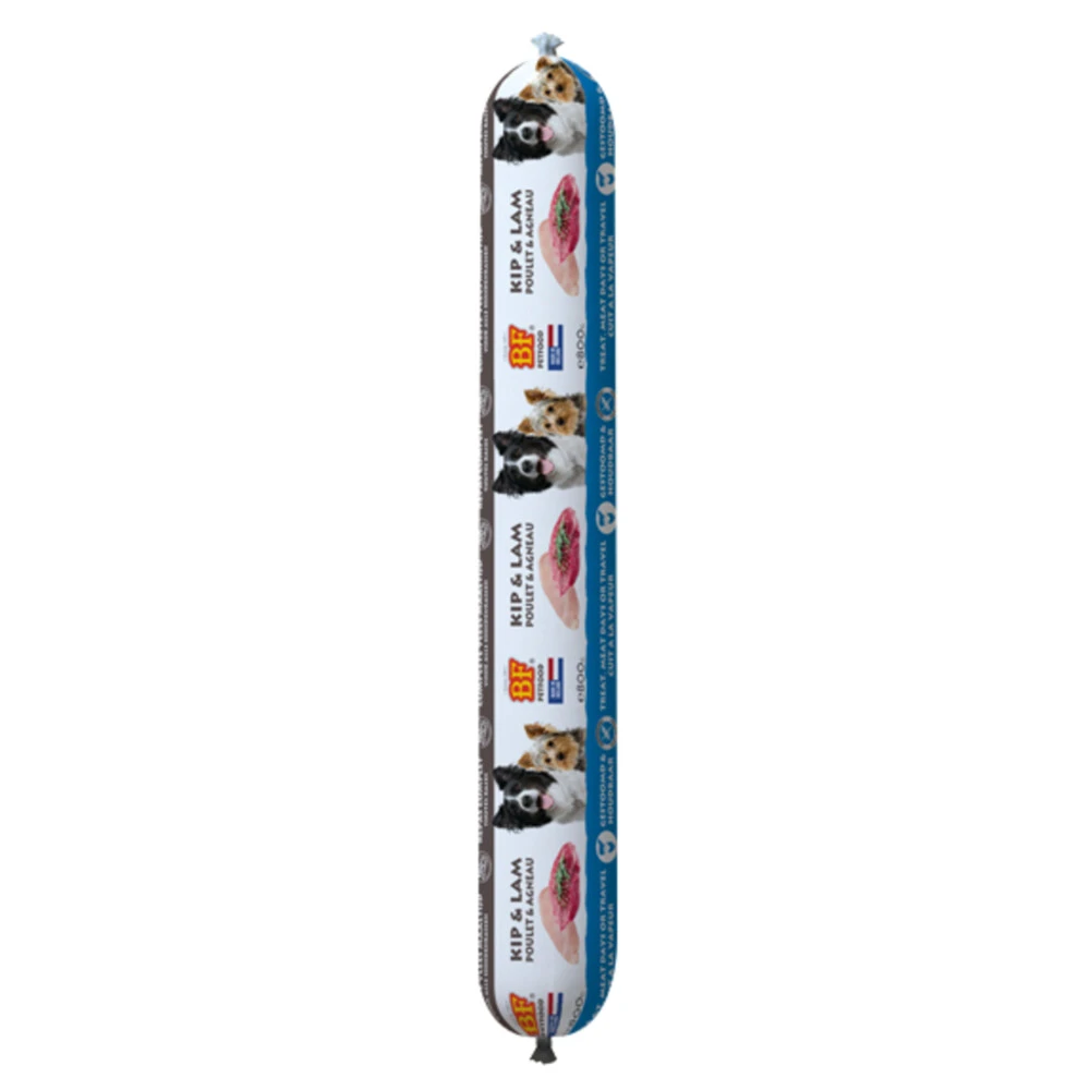 BF Petfood Vleesvoeding Hondenvoer Met LamBF Petfood vleesvoeding is een natuurlijke, complete en houdbare hondenvoeding op basis van verse zalm, kip, orgaanvlees, rijst, schapenvet en natuurkruiden. Is uitermate geschikt voor vleesdagen, als traktatie, voor onderweg, smaakmaker, bij omschakeling naar ander voer of voor honden die slecht reageren op droogvoeding. Handige 800g worst. Geschikt voor iedere hond, van pup tot senior.natuurlijke, complete houdbare hondenvoedingop basis van verse zalm,