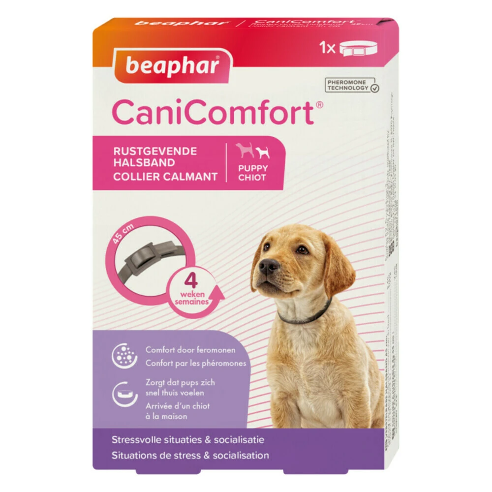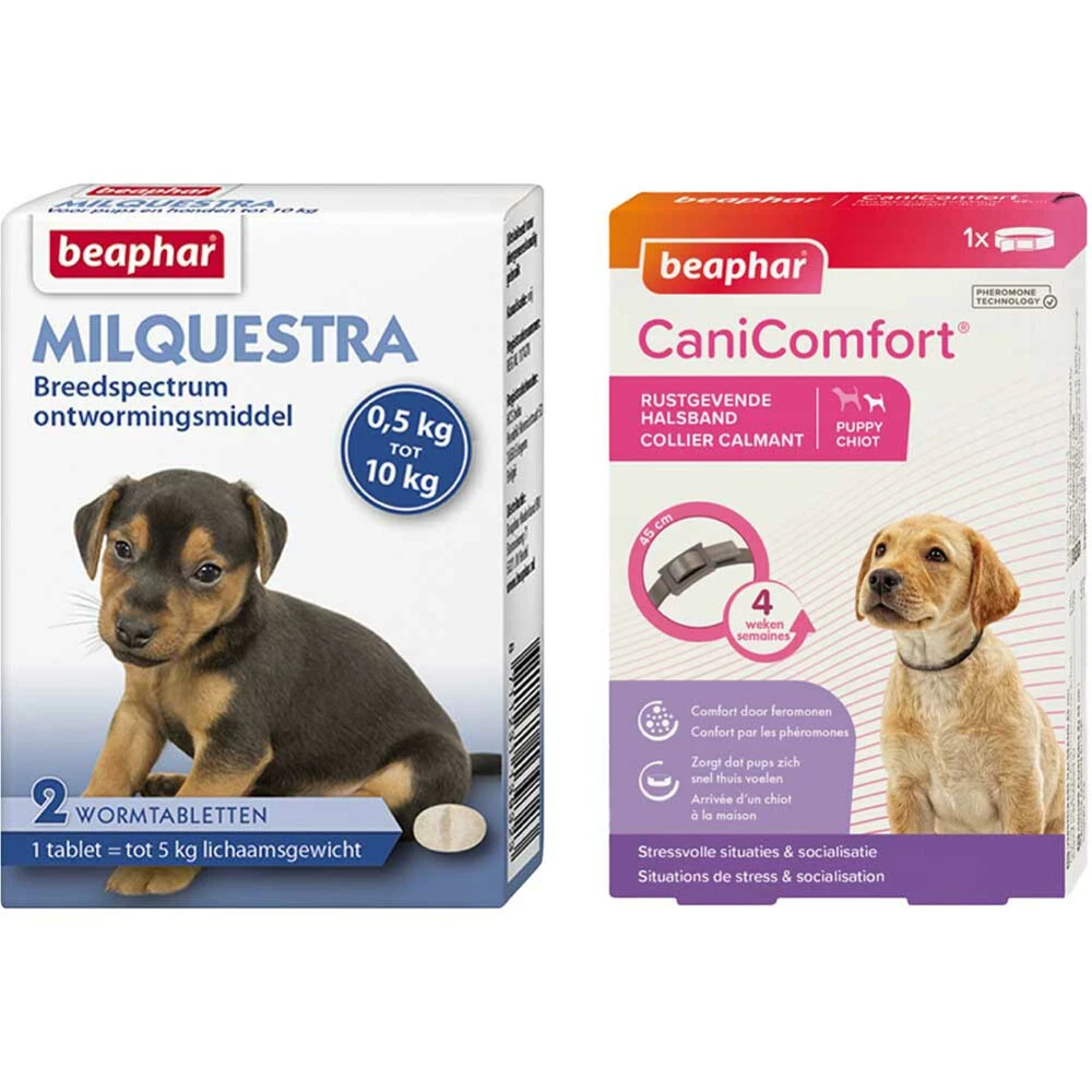 Beaphar Puppy StartpakketZorg voor een optimale start van je pup met een breedspectrum ontwormingsmiddel en een rustgevende halsband, zodat je nieuwe pup zich sneller thuis gaat voelen. De Beaphar CaniComfort® Rustgevende Halsband Puppy is zeer geschikt tijdens de socialisatieperiode of als pups nieuwe ervaringen op doen zoals training, verhuizen van de fokker naar de nieuwe eigenaar, bij de introductie van nieuwe gezinsleden (mens of dier) of andere stressvolle situaties zoals onweer,