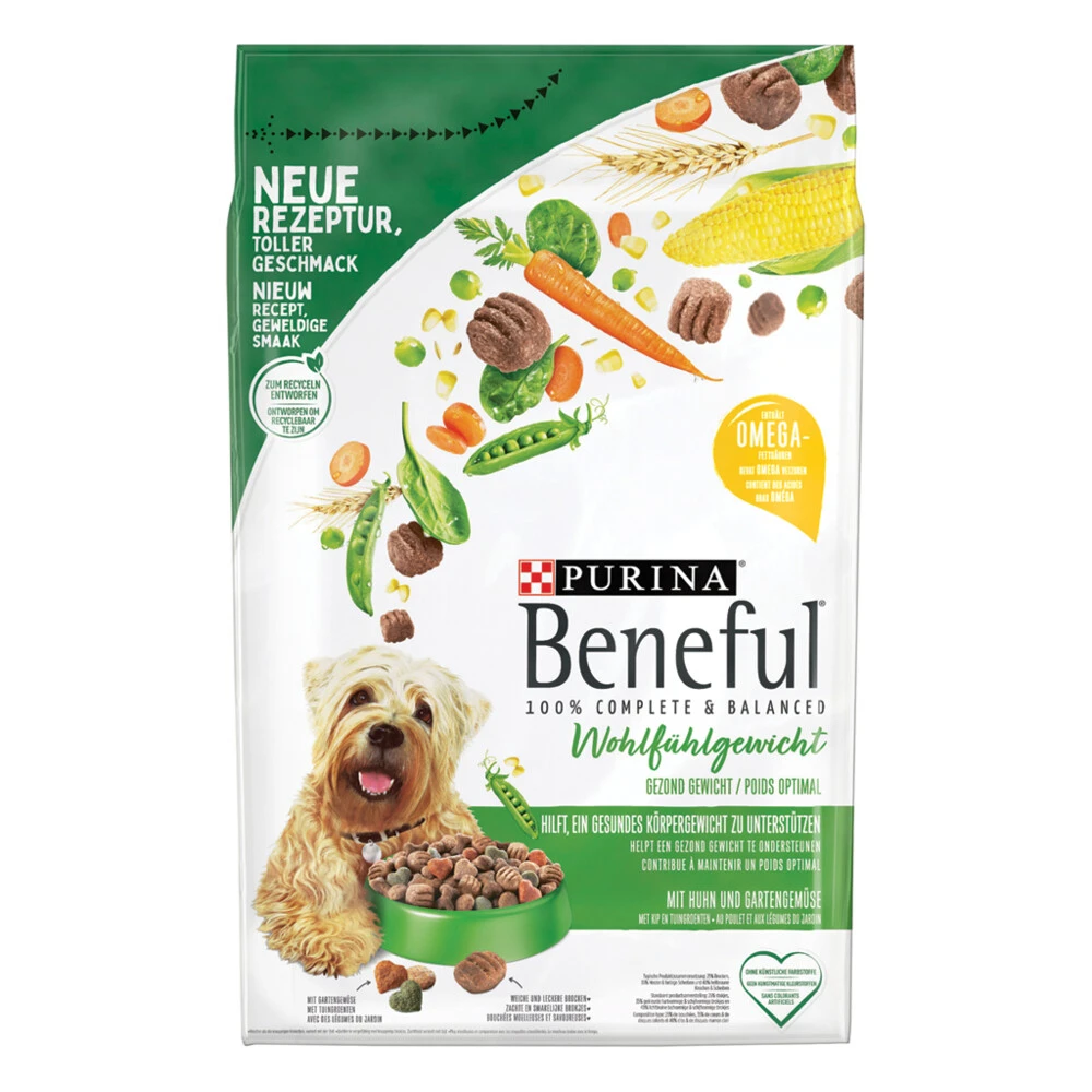Beneful Gezond Gewicht Kip – GroentenNiet te zwaar, niet te licht: Purina Beneful Gezond Gewicht met zachte* stukjes en knapperige brokjes ondersteunt een gezond, uitgebalanceerd lichaamsgewicht dankzij het recept met kip, tuingroenten en vitaminen. Zonder toegevoegde kunstmatige kleurstoffen. Met kwalitatief hoogwaardige eiwitbronnen om de spiermassa te helpen behouden, zelfs tijdens gewichtsverlies. Purina Beneful Gezond Gewicht bevat 20% minder vet dan ons product Original Rund – Groenten. Bo