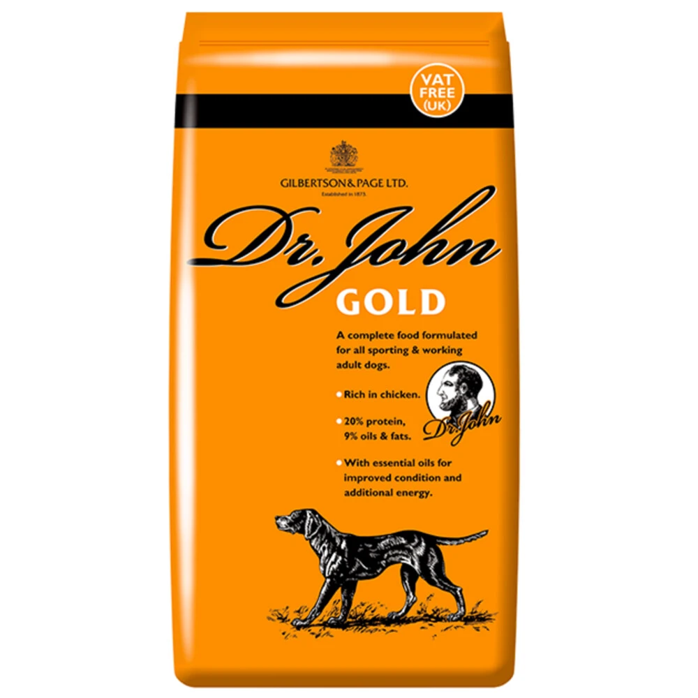 Dr. John Gold HondenvoerDr. John Gold hondenvoer is een compleet hondenvoer geschikt voor alle honden. Het is ontwikkeld voor honden die zware inspanningen leveren, b.v. sport, jacht etc. Dr. John Gold is rijk aan kip.Rijk aan kipCompleet hondenvoerGeschikt voor alle honden