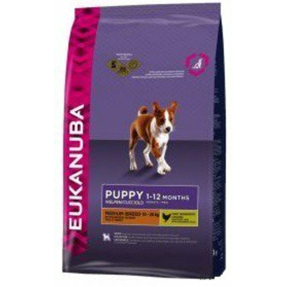 Eukanuba Dog Growing Puppy Medium 3 kgHet unieke Growing Puppy-variant is speciaal samengesteld om een optimale lichaamsconditie en een gezonde groei en ontwikkeling te ondersteunen. Geschikt voor puppy’s van middelgrote rassen tot 12 maanden oud.Deze smakelijke brokken zijn rijk aan verse kip en speciaal afgestemd op de behoeften van honden van middelgrote rassen. Bovendien helpt de speciale zeshoekige vorm de tanden van jouw hond te verzorgen.Ontwikkeld door voedingsdeskundigen, goedgeke
