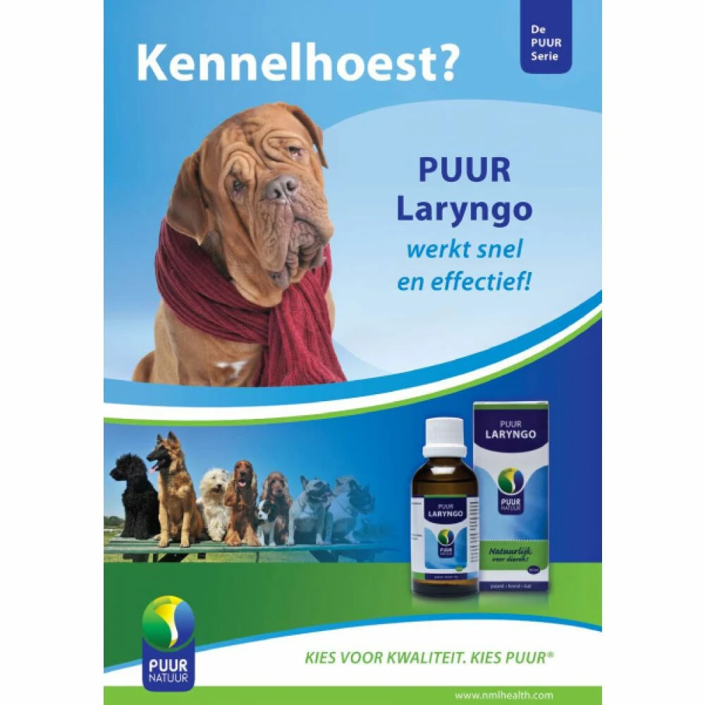 Puur Natuur Laryngo Puur Laryngo werkt verzachtend op de voorste luchtwegen en is geschikt voor hond, kat, konijn en paard. Onder andere te gebruiken bij een kennelverblijf.