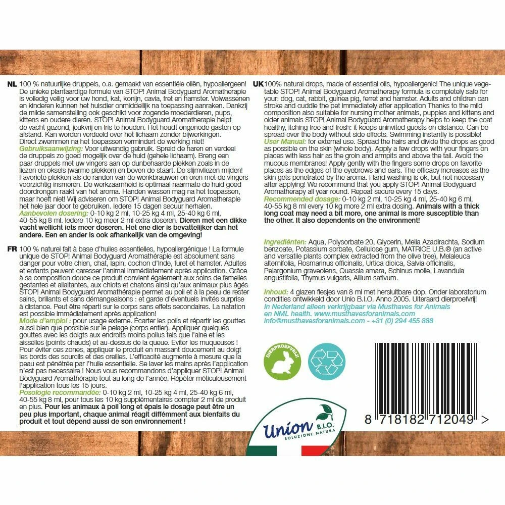 STOP! Animal Bodyguard Aromatherapie Anti Vlooien En Teken Druppels Hond En Kat